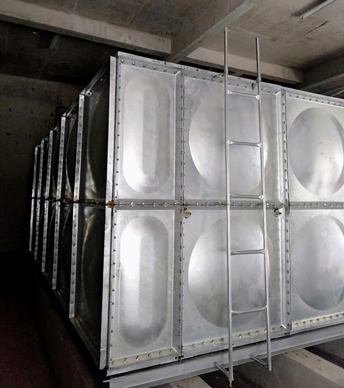鍍鋅水箱主要采用優(yōu)質(zhì)的Q235鋼板沖壓而成,形成1000×1000、1000×500、500×500等標(biāo)準(zhǔn)板塊后經(jīng)熱浸鍍鋅處理后形成鍍鋅水箱板。優(yōu)點(diǎn)是:、全螺栓連接,現(xiàn)場(chǎng)進(jìn)行組裝,組裝快捷方便,組裝時(shí)采用密封條密封,不易出現(xiàn)漏水及密封不嚴(yán)現(xiàn)象。第二、水箱體內(nèi)特殊性拉桿結(jié)構(gòu),使力學(xué)性能更合理,高度可達(dá)到5米。鍍鋅水箱對(duì)安裝現(xiàn)場(chǎng)無(wú)特殊要求,無(wú)需吊裝設(shè)備,容積可滿(mǎn)足用戶(hù)要求。