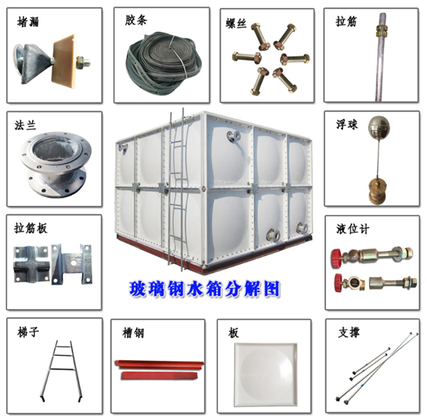 5、 玻璃鋼消防水箱標(biāo)準(zhǔn)配件包括:進(jìn)水管法蘭,出水管法蘭,溢流管法蘭,污水管法蘭,通風(fēng)孔,人孔,內(nèi)外梯等。所有開(kāi)口位置均可在現(xiàn)場(chǎng)指定,但相關(guān)管道路徑和數(shù)量,用戶在訂購(gòu)時(shí)應(yīng)提前指定;